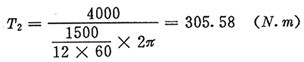 由驅(qū)動(dòng)功率及輸入轉(zhuǎn)速,可近似(忽略摩擦損失)求得輸出扭矩T2為: