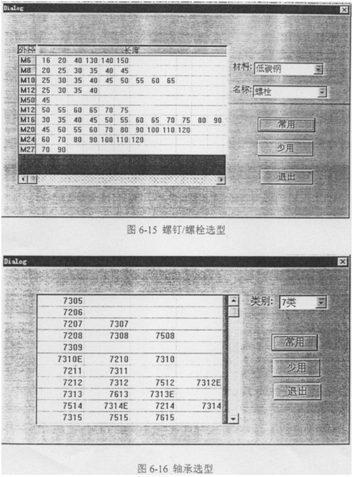 針對企業(yè)的實際需求,在庫存-設(shè)計模塊,控制設(shè)計人員對螺釘/螺栓(見圖6-16)和軸承(見圖6-16)的選型。盡可能減少零件的庫存量,從而達(dá)到合理利用企業(yè)的資源。