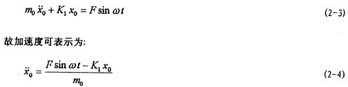 實測動圈質(zhì)量m0時,置振動臺動圈推力一定值F,空載測得振動臺動圈質(zhì)量m0的加速度 和位移,此時,將D350電動振動臺考慮為一個單自由系統(tǒng),運動生分方程為(由于振動臺動圈阻尼一般較小,故不考慮C1的作用):