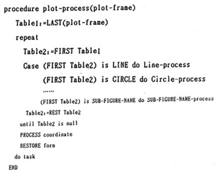 計(jì)算機(jī)各種語(yǔ)言以及各種繪圖軟件包各具風(fēng)格,繪圖指令各種各樣,但萬(wàn)變不離其宗。因而就有可能形成一種通用的機(jī)制。作者在這里研制了一種較通用的繪圖指令生成器,其原理是通過(guò)分析各種繪圖軟件包的各種繪圖指令,在盡可能廣泛的情況下,使繪圖指令生成器的內(nèi)部,包含各種繪圖指令。同時(shí),繪圖指令生成器也可以通過(guò)編輯或輸入的方法進(jìn)一步擴(kuò)充繪圖指令?梢酝ㄟ^(guò)二種方式改變輸出繪圖文件的格式:一是通過(guò)編輯修改輸出語(yǔ)句格式;二是通過(guò)教導(dǎo)式的學(xué)習(xí)方法改變繪圖文件的物出格式,如下過(guò)程: