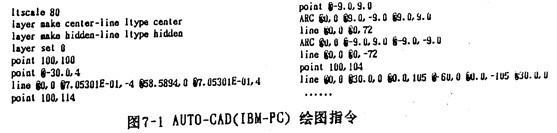 現(xiàn)在,各種計(jì)算機(jī)語(yǔ)言中,如PASCAL, FORTRAN, BASIC等均帶有圖語(yǔ)句。有諸如直線,圓弧,圓等基本指令(人工智能語(yǔ)言GCLISP versionl.0版因?yàn)闆](méi)有三角等計(jì)算函數(shù)的功能,所以沒(méi)有圓弧、圓等指令)。相應(yīng)的,各種計(jì)算機(jī)輔助繪圖軟件包,如IMB-PC上常用的AUTO-CAD, APOLLO工作站上使用的GPR均含有繪圖的基本單元,如繪制直線、點(diǎn)、中心線、折線、圓、圓弧等墓本圖形命令,進(jìn)一步的如APOLLO的S7K繪圖軟件包的三維實(shí)體造型等功能,其基本圖素如圓柱體、錐體、球體、立方體等;并都具有圖形平移、旋轉(zhuǎn)、縮小、放大等功能。但是,各繪圖軟件包一般都自成體系,比較難以通用。作者通過(guò)對(duì)這些軟件的分析,用LlSP編寫(xiě)了一個(gè)比較通用的二維繪圖軟件包,在使用時(shí),只要按所使用的軟件的相應(yīng)格式填寫(xiě),就可輸出相應(yīng)的繪圖命令。分別介紹如下: