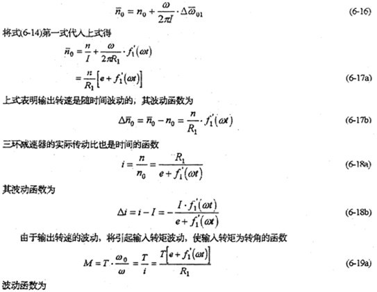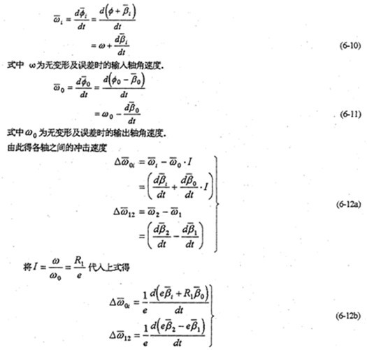 由于減速器機構的變形及各構件的誤差,使各傳動軸的角速度及角加速度不再滿足條件式(6-8)及式(6-9),亦在運轉過程中各軸之間存在角速度及角加速度的沖擊現象。該沖擊將直接導致系統(tǒng)振動,使輸出速度產生波動、降低其輸出的穩(wěn)定性,并產生沖擊載荷。