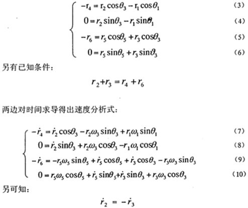 本章所要做的工作就是對(duì)上一章選出來(lái)的二自由度連桿機(jī)構(gòu),進(jìn)行運(yùn)動(dòng)學(xué)分析,初步選定機(jī)構(gòu)的結(jié)構(gòu)參數(shù),分析其輸入輸出速度能否滿(mǎn)足設(shè)計(jì)要求,為以后的動(dòng)力學(xué)分析做依據(jù)。