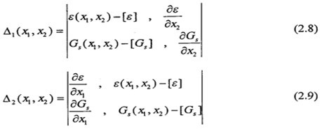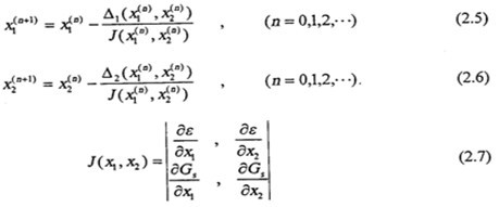 方程組(2.4)的求解,實(shí)際上是兩條限制曲線交點(diǎn)的求法,如圖(2.2)所示。根據(jù)文獻(xiàn),求點(diǎn)X1和X2,用牛頓法迭代,逐步逼近到交點(diǎn)。其迭代程序如下:
