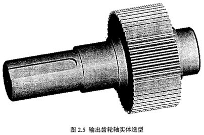 圖2.5為本文雙環(huán)減速器輸出齒輪軸實(shí)體造型圖。圖2.6為本文雙環(huán)減速器實(shí)驗(yàn)樣機(jī)的裝配圖的俯視圖。本文的雙環(huán)減速器實(shí)驗(yàn)樣機(jī),采用一種新型的環(huán)式行星傳動(dòng)裝置。