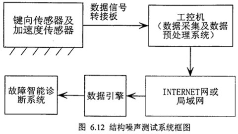 實(shí)驗(yàn)裝置共有兩大部分,一部分是實(shí)時(shí)監(jiān)測(cè)及數(shù)據(jù)采集,一部分是信號(hào)分析處理系統(tǒng)。其測(cè)試系統(tǒng)框圖如圖6.12所示。