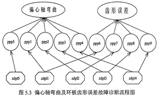 根據以上分析,本文用圖形化的智能故障診斷預報系統(INCON FIDPS), 建立了雙環(huán)減速器偏心軸彎曲及環(huán)板齒形誤差兩種故障的推理流程。如圖5.3 所示。