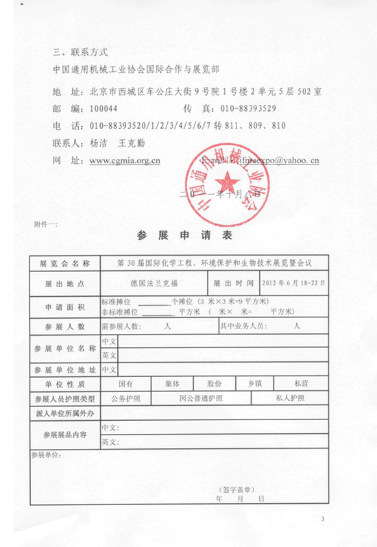 參展方式:預(yù)參展會員企業(yè)于2011年10月31日前向各專業(yè)分會報名并說明參展面積;總會統(tǒng)計參展商人數(shù)及參展面積后,向阿赫瑪展會主辦方申請參展總面積,待主辦方確認面積及價格后,向各參展商通報最終展位價格并與之共同協(xié)商展位分布!秴⒄股暾埍怼芬姼郊弧