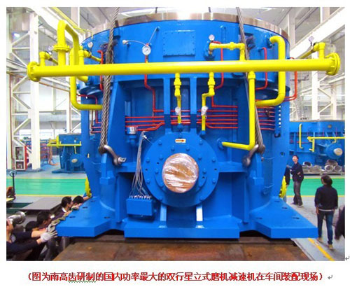 2011年11月,南京高精傳動(dòng)設(shè)備制造集團(tuán)有限公司(簡(jiǎn)稱:南高齒)子公司南京高精齒輪集團(tuán)有限公司自主研發(fā)制造的國(guó)內(nèi)功率最大的雙行星立式磨機(jī)減速機(jī)成功試車。該減速機(jī)型號(hào)為MLXSS540,輸入功率5400kW,各項(xiàng)試驗(yàn)性能優(yōu)秀,目前已交付客戶使用。此前,國(guó)內(nèi)首臺(tái)3600kW雙行星立式磨機(jī)減速機(jī)亦是由南高齒研制。