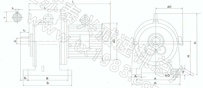 TY系列同軸式硬齒面齒輪減速器是理想的動力傳送裝置,它廣泛適用于冶金、礦山、能源、建材、運輸、化工、紡織等行業(yè)。減速器的齒輪圓周速度不大于20m/s允許正、反轉(zhuǎn);適用于水平臥式安裝,前后傾斜角不大于20度;直聯(lián)電機為Y系列三相異步四級電動機,電機的安裝型式為B5或B35:工作環(huán)境溫度為0℃—40℃