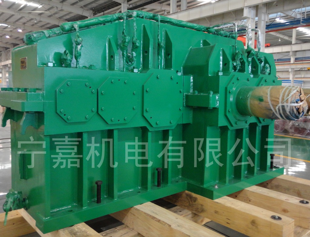 此次交付的XSM270是為密閉式煉膠機(jī)配套的主齒輪箱,是高精度重載荷硬齒面齒輪齒輪箱,是寧嘉公司成熟化系列產(chǎn)品。該主齒輪箱采用平行圓柱齒輪減速的傳動形式。輸入軸通過聯(lián)軸器與電機(jī)軸相聯(lián),由電機(jī)驅(qū)動,經(jīng)過齒輪減速和兩輸出軸之間齒輪的減速與功率分流,再通過聯(lián)軸器把動力傳遞給密煉機(jī)轉(zhuǎn)子軸,從而帶動密煉機(jī)轉(zhuǎn)子進(jìn)行煉膠。