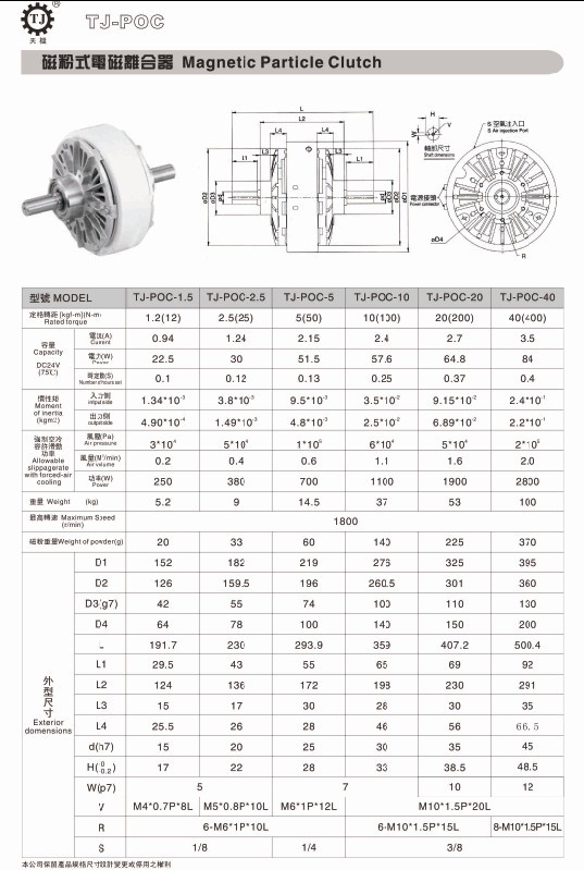 天機(jī)TJ-POC電磁式磁粉剎車(chē)器尺寸規(guī)格如下: