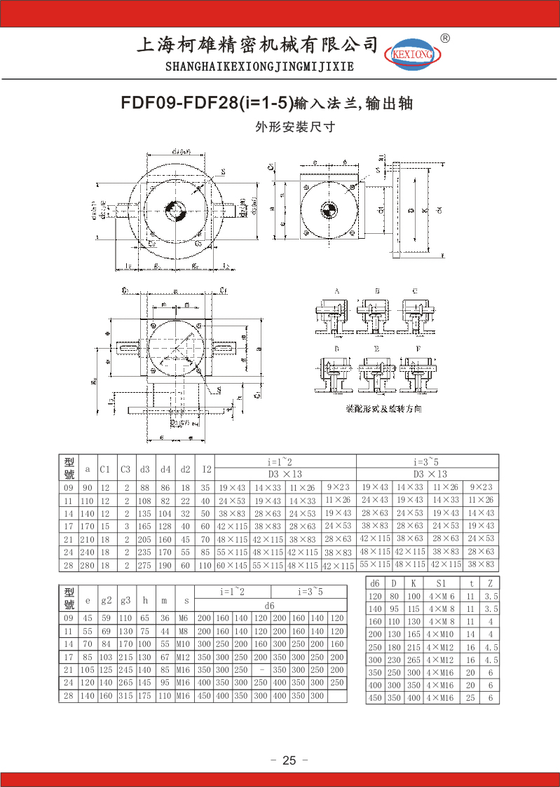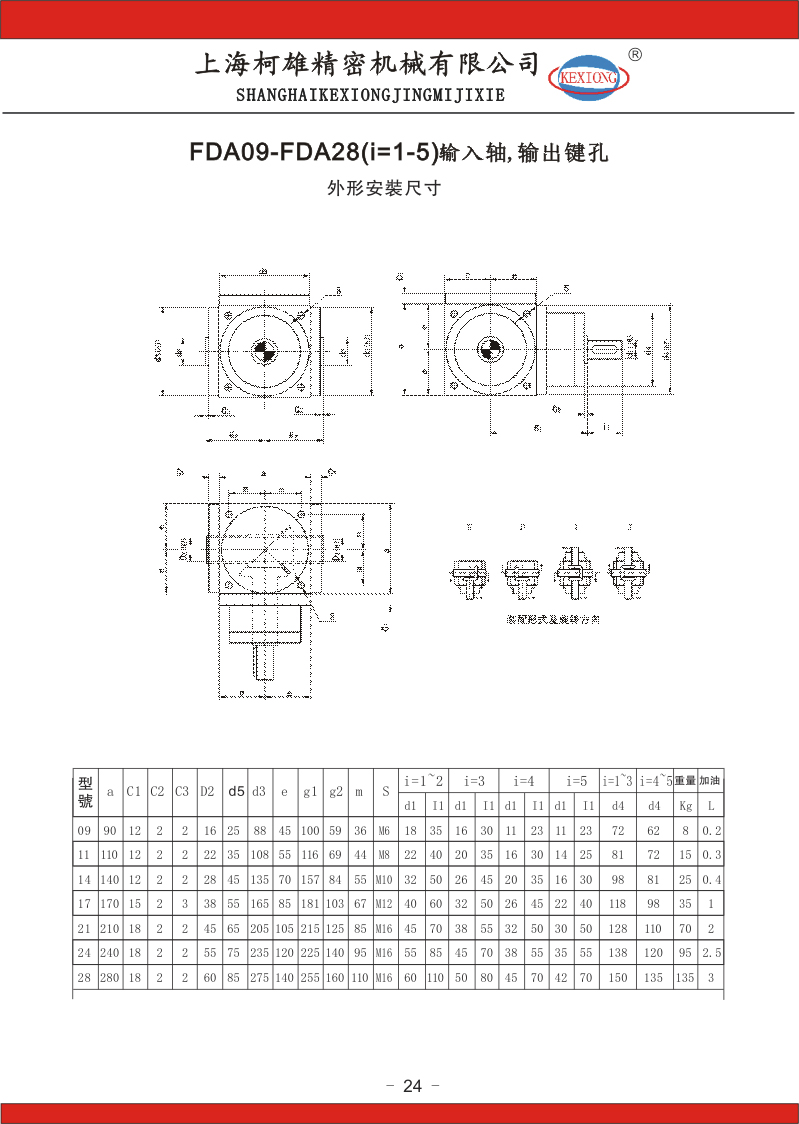 6、提供底腳安裝和法蘭安裝形式,可提供雙輸入軸形式,可實現(xiàn)多出軸,輸出軸可提供實心軸、空心軸單鍵、空心軸花鍵形式。