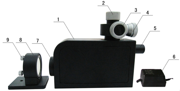 6、變壓器 7、望遠物鏡 8、可調(diào)式反射鏡 9、調(diào)節(jié)螺釘