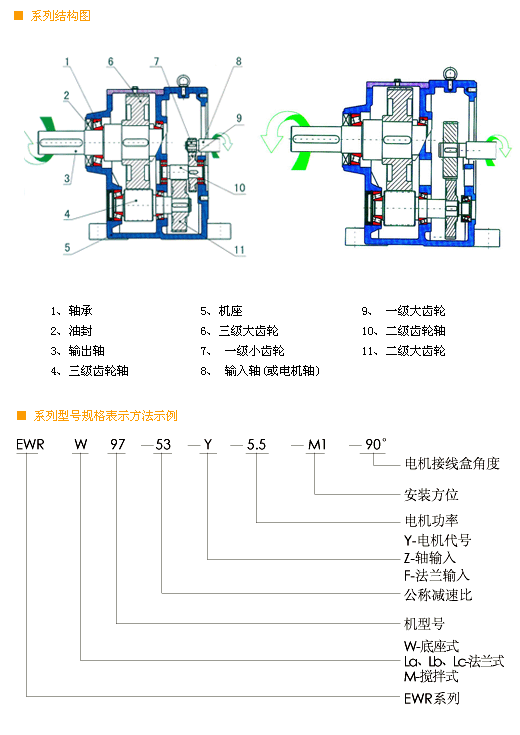 1. 特點(diǎn):小偏置輸出,結(jié)構(gòu)緊湊,最大限度利用 箱體空間、采用整體式鑄造箱體,剛度好, 可以提高軸的強(qiáng)度和軸承壽命。 |