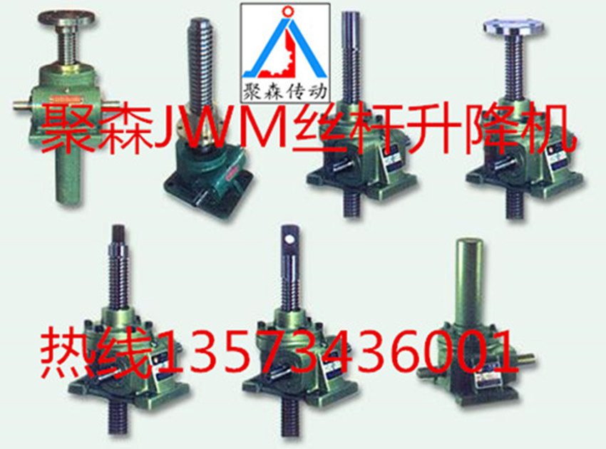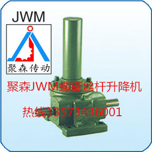 JWM螺旋升降機(jī)是一種基礎(chǔ)起重部件,具有結(jié)構(gòu)緊湊、體積小、重量輕、動(dòng)力源廣泛、無(wú)噪音、安裝方便、使用靈活、功能多、配套形式多、可靠性高、使用壽命長(zhǎng)等許多優(yōu)點(diǎn)?梢詥闻_(tái)或組合使用,能按一定程序準(zhǔn)確地控制調(diào)整提升或推進(jìn)的高度,可以用電動(dòng)機(jī)或其它動(dòng)力直接帶動(dòng),也可以手動(dòng)。它有不同的結(jié)構(gòu)形式和裝配形式,且提升高度可按用戶的要求定制。