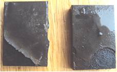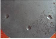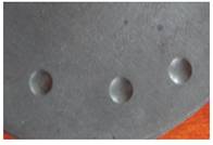 圖1 稀土增強陶瓷涂層2000h腐蝕 圖2 WC30%+Fe陶瓷涂層1500h腐蝕樣品 圖3 CrC陶瓷涂層1500h腐蝕樣品 圖4 4Cr13鋼800h腐蝕樣品 涂層抗變形能力測試結(jié)果如圖5和圖6所示。實驗采用布氏硬度壓痕法,鋼球直徑10mm,載荷1800N,測試樣品經(jīng)1500h腐蝕測試后進行壓痕測試。 圖5 稀土增強陶瓷涂層壓痕樣品 圖6 CrC陶瓷涂層樣品 5 展望 在熱噴涂耐磨涂層,尤其在螺桿泵技術(shù)領(lǐng)域的涂層采用真空浸滲技術(shù)封堵涂層缺陷的報道還鮮有報道,且未見成果應(yīng)用。開展這一領(lǐng)域研究,在國內(nèi)具有一定的技術(shù)先進性,在螺桿泵行業(yè)也有領(lǐng)先技術(shù)的優(yōu)勢。 寧波鎮(zhèn)海減變速機公司借助了國防工業(yè)設(shè)備及技術(shù)的先進優(yōu)勢,在噴涂技術(shù)途徑上采用了先進的超音速火焰噴涂技術(shù)和等離子噴涂技術(shù),獲得了優(yōu)良的涂層質(zhì)量。涂層防腐技術(shù)途徑采用了真空封堵技術(shù)途徑,有效克服了噴涂涂層的制備缺陷,同時也有效地提高了涂層的結(jié)構(gòu)強度。 目前,在涂鍍層上應(yīng)用真空浸滲技術(shù)封堵涂鍍層中的缺陷的已有研究,但進展較慢,由于受封堵劑的限制,在納米粒子浸滲劑的領(lǐng)域落后國外。目前兵器行業(yè)某研究所從匈牙利引進的真空封堵劑采用了硅酸鹽納米粒子技術(shù),使得鋁、鎂合金微弧氧化層、鋁合金陽極化層的封堵獲得良好效果,使得涂層的耐腐蝕性能成倍獲得提高。同時,在涂層與基體界面的處理上,采用了無裂紋涂鍍層技術(shù),無晶化鍍層處理,有效提高了基體的抗腐蝕性能,使45鋼基體達到不銹鋼的耐酸堿腐蝕能力,有效增加了涂層的抗腐蝕性能。