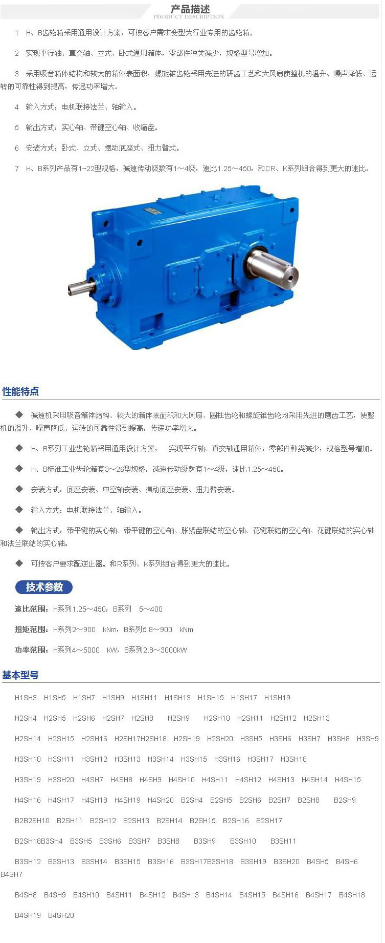 1 H、B齒輪箱采用通用設(shè)計(jì)方案,可按客戶需求變型為行業(yè)專(zhuān)用的齒輪箱。