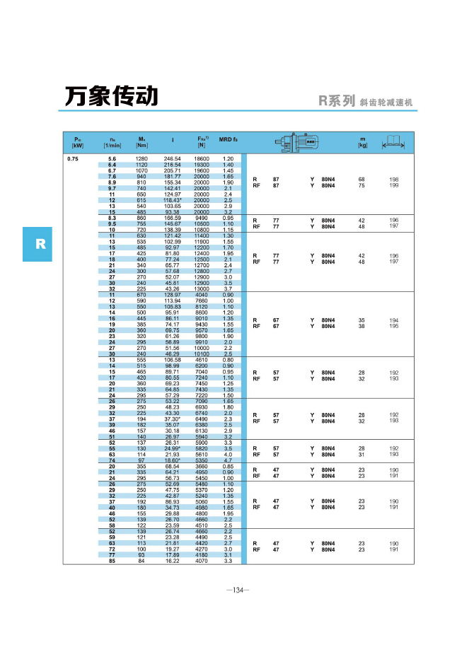 速比范圍:R基本型3.33~289.74,RX型1.3~8.65,R/R組合型可達(dá)到27001