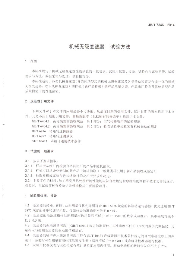 機(jī)械無級(jí)變速器試驗(yàn)方法(JB/T7346-2014)
