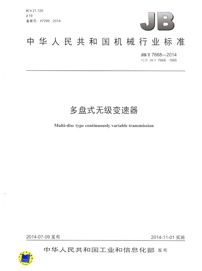 多盤式無級變速器(JB/T7668-2014)