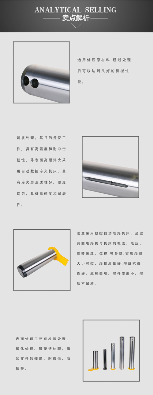 挖掘機(jī)斗軸淬火的目的是使過(guò)冷奧氏體進(jìn)行馬氏體或貝氏體轉(zhuǎn)變,得到馬氏體或貝氏體組織,然后配合以不同溫度的回火,以大幅提高鋼的強(qiáng)度、硬度、耐磨性、疲勞強(qiáng)度以及韌性等,從而滿(mǎn)足各種機(jī)械零件和工具的不同使用要求。斗軸也可以通過(guò)淬火滿(mǎn)足某些特種鋼材的鐵磁性、耐蝕性等特殊的物理、化學(xué)性能。發(fā)黑是化學(xué)表面處理的一種常用手段,原理是使金屬表面產(chǎn)生一層氧化膜,以隔絕空氣,達(dá)到防銹目的。外觀(guān)要求不高時(shí)可以采用發(fā)黑處理,鋼制件的表面發(fā)黑處理,也有被稱(chēng)之為發(fā)藍(lán)的。