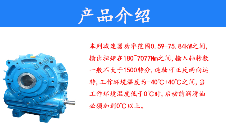 SCW系列圓弧圓柱蝸桿減速機(jī)蝸桿軸轉(zhuǎn)速不超過1500r/min;工作環(huán)境溫度為-40-40℃,當(dāng)工作環(huán)境溫度低于0℃時,啟動前潤滑油必須加熱到0℃以上該減速機(jī)可正、反向運(yùn)轉(zhuǎn)。