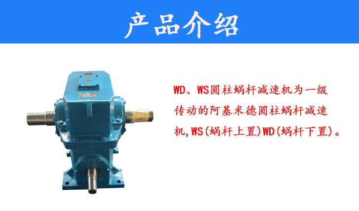 WD、WS圓柱蝸桿減速機(jī)為一級(jí)傳動(dòng)的阿基米德圓柱蝸桿減速機(jī),WS(蝸桿上置)WD(蝸桿下置)。