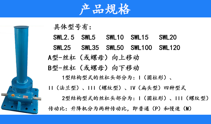 承載能力2.5—120T。具有結(jié)構(gòu)緊湊、積小、重量輕、動(dòng)力源廣泛、無噪音、安裝方便、使用靈活、功能多、配套形式多、可靠性高、使用壽命長許多優(yōu)點(diǎn)。具有提升、降落、推進(jìn)、翻轉(zhuǎn)等多種功能,可以單臺(tái)或組合使用,能按一定程序準(zhǔn)確地控制調(diào)整升或推進(jìn)的高度,可以用電動(dòng)機(jī)或其它動(dòng)力直接帶動(dòng),也可以手動(dòng)。最高輸入轉(zhuǎn)速1500r/min,最大提升速2.7m/min。有不同的結(jié)構(gòu)型式和裝配方式,提升高度按用戶的要求制造。該裝置可以自鎖。