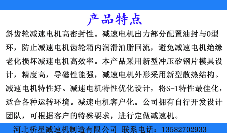 2、減速電機高效率。本產(chǎn)品采用新型沖壓的鋼片模具設計,精度高,導磁性能強,減速電機外形采用新型散熱結(jié)構(gòu)。