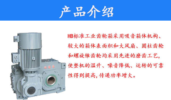 HB標(biāo)準(zhǔn)工業(yè)齒輪箱采用吸音箱體機(jī)構(gòu)、較大的箱體表面積和大風(fēng)扇、圓柱齒輪和螺旋錐齒輪均采用先進(jìn)的磨齒工藝,使整機(jī)的溫升、噪音降低、運(yùn)轉(zhuǎn)的可靠性得到提高,傳遞功率增大。