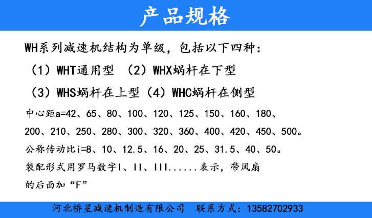 減速器型號(hào)中的“W,H、T、X、S、C”分別為“蝸、弧,通,下,上,側(cè)”的漢語拼音字頭,組合為