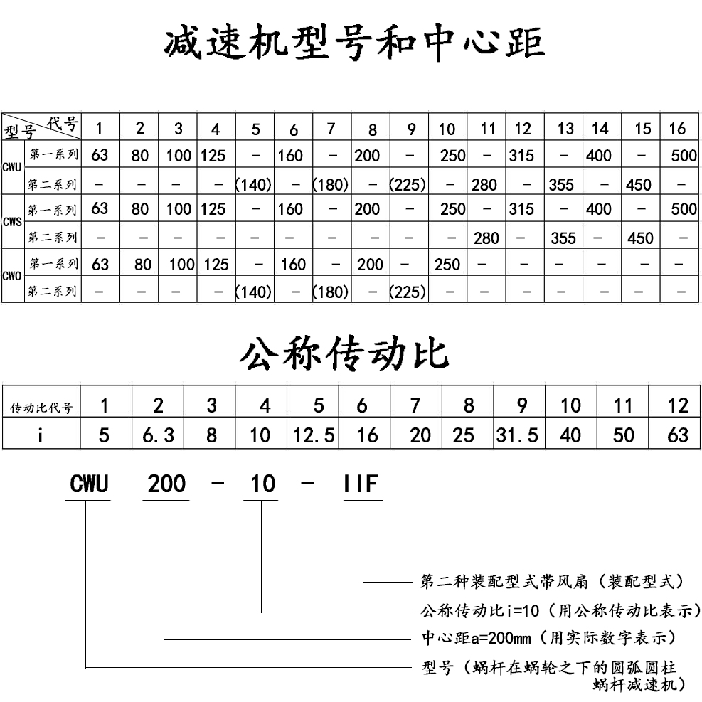 CWO-蝸桿在蝸輪之上的圓弧圓柱蝸桿減速機三種型號及a=63~500mm,16種中心距