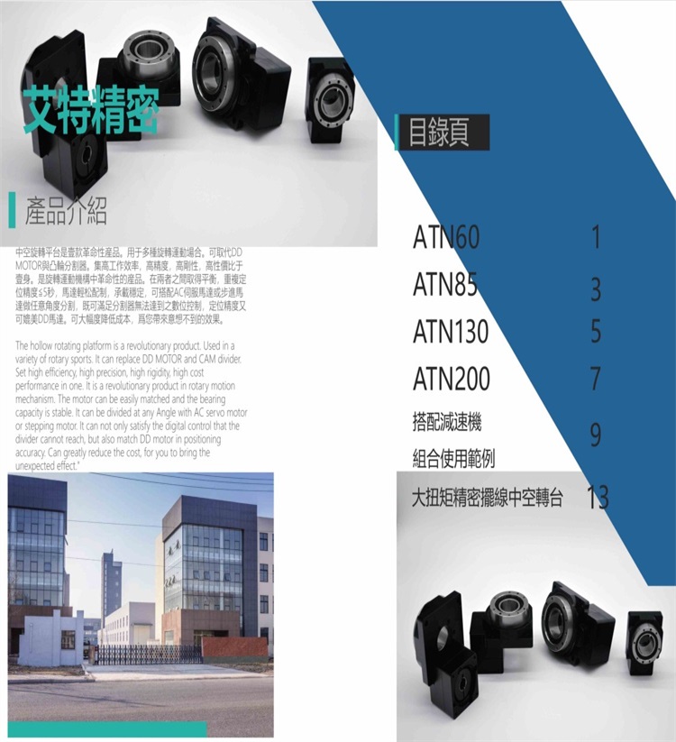 中空旋轉平臺可取代DD馬達與分割器,在兩者之間取得平衡,重復定位精度≦5 秒, 馬達輕松配制,承載穩(wěn)重,可搭配AC伺服馬達或步進馬達做任意角度分割,既可滿足分割器無法達到之數(shù)位控制,定位精度又可媲美DD馬達?纱蠓冉档统杀,為您帶來意想不到的效果!中空軸旋轉平臺是行星伺服減速機的中一個系列。