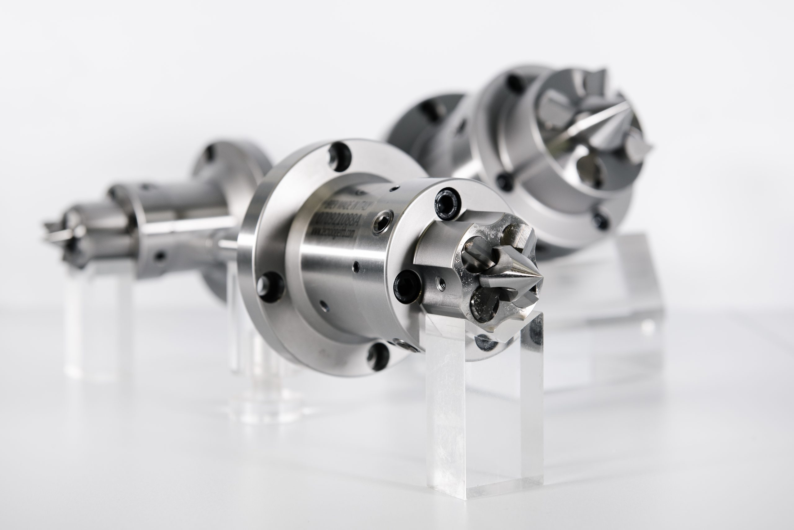 FRB端面驅(qū)動(dòng)頂尖主要應(yīng)用于軸類工件的加工,可用于軸類工件的車削、磨削、銑削齒輪加工,端面驅(qū)動(dòng)頂尖的使用摒棄了傳統(tǒng)軸類零件加工的“一夾一頂”的方式,其采用“雙頂”的工作方式,利用端面驅(qū)動(dòng)頂尖的中心定位頂尖和機(jī)床尾座頂尖進(jìn)行定位,端面驅(qū)動(dòng)頂尖的傳動(dòng)銷嵌入工件端面通過機(jī)床主軸旋轉(zhuǎn)驅(qū)動(dòng)工件,可以一次裝夾完成外圓柱面、螺紋、花鍵、橫向孔、溝槽、倒角等多個(gè)工件加工工序,同軸度和位置度更有保證,可大大提升生產(chǎn)周期和產(chǎn)品的品質(zhì),具有效率高、精度高、使用簡(jiǎn)單的特點(diǎn),特別適合軸類零件加工。
