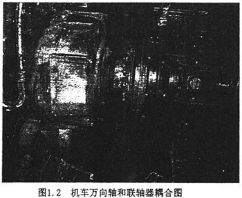 內(nèi)燃機(jī)車柴油機(jī)所使用的彈性聯(lián)軸器的工作特點(diǎn)與一般機(jī)械上的彈性聯(lián)軸器不同,柴油機(jī)起動(dòng)時(shí),動(dòng)力由電機(jī)端通過(guò)輔助萬(wàn)向軸經(jīng)彈性聯(lián)軸器傳到柴油機(jī)。聯(lián)軸器的工作耦合圖見(jiàn)圖1.2。一旦起動(dòng)成功,則動(dòng)力改由柴油機(jī)端傳入,經(jīng)彈性聯(lián)軸器與萬(wàn)向軸輸出帶動(dòng)電機(jī)。因此,萬(wàn)向軸與彈性聯(lián)軸器工作狀態(tài)的耦合情況,特別是彈性聯(lián)軸器在短時(shí)間內(nèi)承受反轉(zhuǎn)扭矩所產(chǎn)生的扭轉(zhuǎn)振動(dòng)對(duì)彈性聯(lián)軸器的失效可能有重要的影響。機(jī)車柴油機(jī)輸出軸與萬(wàn)向軸之間的彈性聯(lián)軸器的失效問(wèn)題已成為急待解決的技術(shù)問(wèn)題之一。因此,在對(duì)彈性聯(lián)軸器進(jìn)行一般性的研究基礎(chǔ)上,還需要研究聯(lián)軸器在不對(duì)中的工作情況下,扭矩輸入輸出方向反轉(zhuǎn)特性對(duì)其動(dòng)力及強(qiáng)度特性的影響。