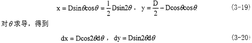 設A為主動轉子的軸心投影,B為從動轉子的軸心投影,K為中心齒套的軸心,那么有AK丄BK,設AB長度為D,K點的坐標為K(x,y),取θ為自變量,如圖3.5所示。則有