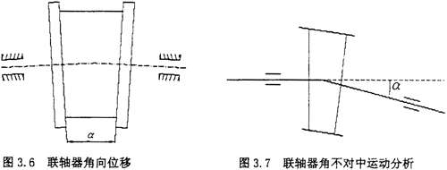 (3)當轉子軸線之間存在偏角位移時(如圖3.6),從動轉子的角速度與主動轉子角速度是不同的,從動轉子的角速度為