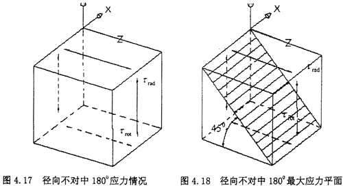 由圖示可知,此時(shí)單元體的受力其實(shí)是屬于純剪切狀態(tài),只是此時(shí)的剪切應(yīng)力為τrad與τrot的疊加。此時(shí)剪應(yīng)力τrad與τrot的方向相反。所在最大應(yīng)力有所抵消。