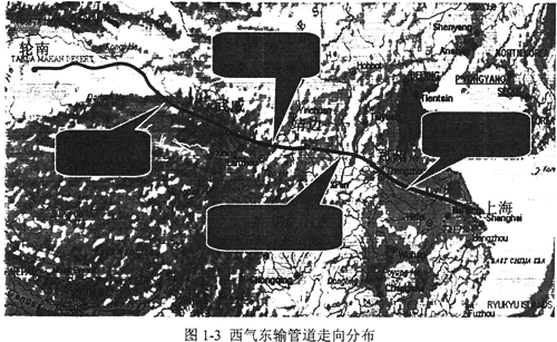 西氣東輸工程是我國在新世紀(jì)啟動的最大的建設(shè)工程之一,是西部大開發(fā)的標(biāo)志性工程。工程西起新疆塔里木盆地的輪南氣田,經(jīng)甘肅、寧夏,進(jìn)入陜西,在靖邊與長慶氣田連接,經(jīng)山西、河南、安徽、江蘇、浙江,東抵上海。