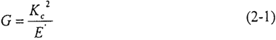 在斷裂力學中,定義引起裂紋產(chǎn)生單位長度的擴展所需要的能量為裂紋驅(qū)動力G。在平面問題中,G與應(yīng)力強度因子Kc的關(guān)系可以表達為: