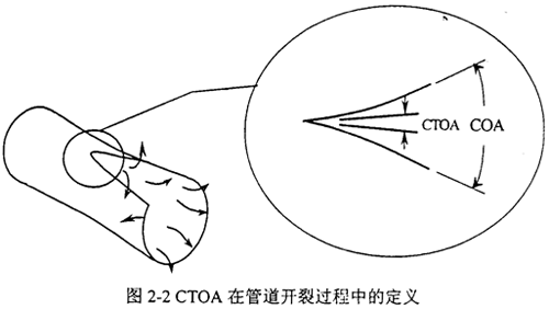 裂紋尖端張開角CTOA(Crack Tip Opening Angle)最早被用來(lái)分析核電站管路的穩(wěn)態(tài)裂紋擴(kuò)展,后來(lái)用于輸氣管線和航空工業(yè)。如圖2-2,與裂紋張開角COA不同,CTOA對(duì)應(yīng)于一定的斷裂擴(kuò)展?fàn)顟B(tài),不隨測(cè)量點(diǎn)的位置而改變。CTOA在數(shù)學(xué)上可以按下式定義: