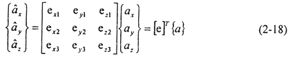 對(duì)于總體坐標(biāo)系中的任意矢量a,其在節(jié)點(diǎn)坐標(biāo)系中的分量可以表達(dá)為: