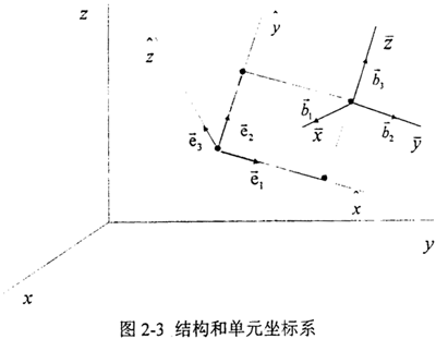 ●節(jié)點(diǎn)坐標(biāo)系行(,),反映節(jié)點(diǎn)的平動(dòng)與轉(zhuǎn)動(dòng);正交基矢量為bi。