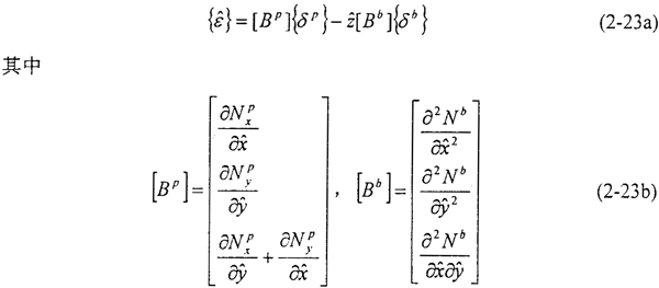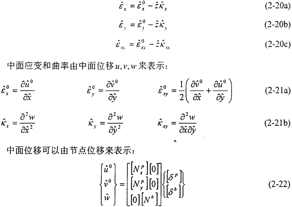基于Kirchhoff假設(shè)的板殼單元,殼體中某一點(diǎn)的應(yīng)變,可以由中面應(yīng)變,和曲率,,來(lái)表示: