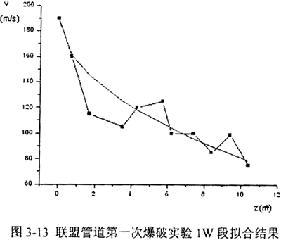 對于圖3-9中的lW段,取v0=200m/s,Lr=35m,擬合結(jié)果如圖3-13所示: