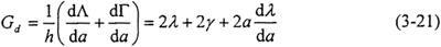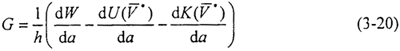 由(3-14)和(3-21)式,最終得到裂紋單側(cè)擴展的能量平衡方程: