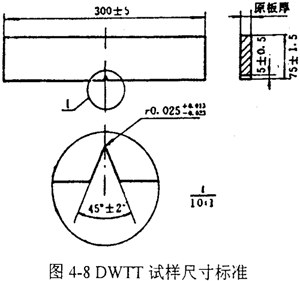 圖4-8和圖4-9分別表示DWTT的試樣標準和斷口形貌。
