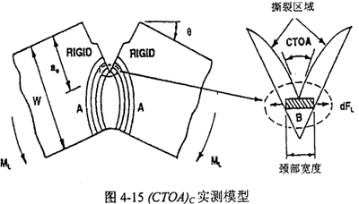 (CTOA)c可以通過攝像機從實物裂紋擴展的照片上觀測得到,也可同CVN或DWTT實驗建立聯(lián)系。Wilkowski分別建立了基于CVN和DWTT吸收功的(CTOA)c經(jīng)驗算法,模型如圖4-15。另一種方法是通過測定作用于試件上的總功,從裂紋擴展能的角度計算(CTOA)c。