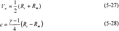 其中無反射邊界條件是根據(jù)特征線的方法來求出邊界上的參數(shù)值。根據(jù)一維完全氣體無粘非定常運動的方程組,在亞聲速的條件下由邊界上的入射波和出射波關(guān)系可以得到兩個Riemann不變量: